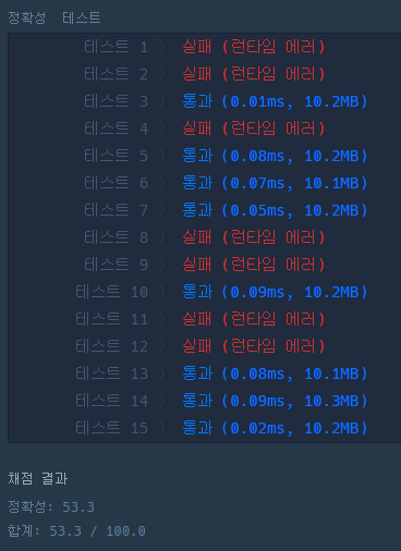 if len(mm) >1 이 없었는데, 이거때문에 처음에 53점 나왔다..ㅋㅋ